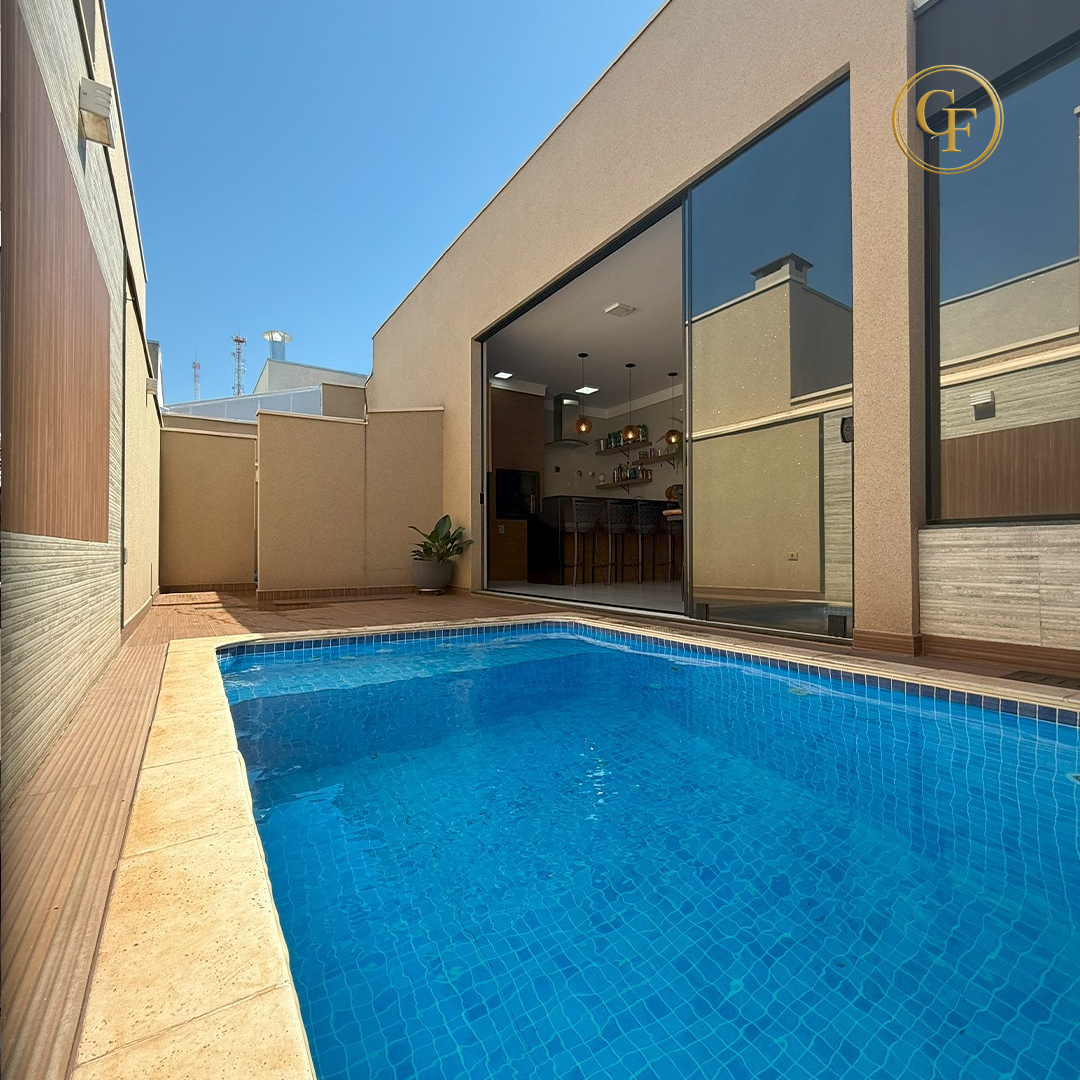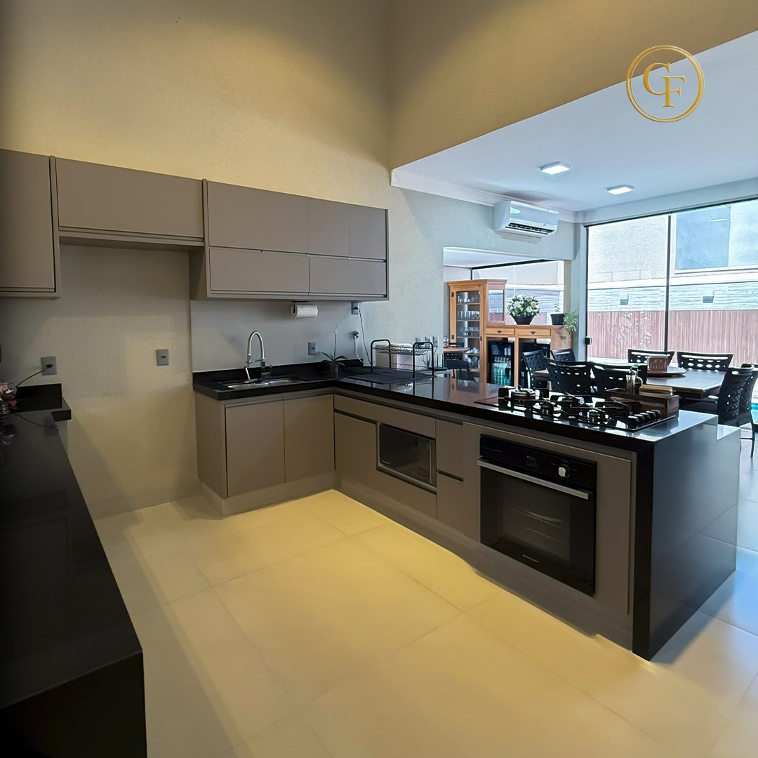 🏠Ótima casa com 3 suítes modernas (todas com Jardim de inverno, sendo a suíte master com closet), cozinha planejada com armários, cooktop e forno, sala com pé direito duplo, integrada a sala de jantar, piscina aquecida com cascata, hidromassagem, casa inteira climatizada, garagem para 4 carros, sistema de energia solar e boiler de 1000 L.