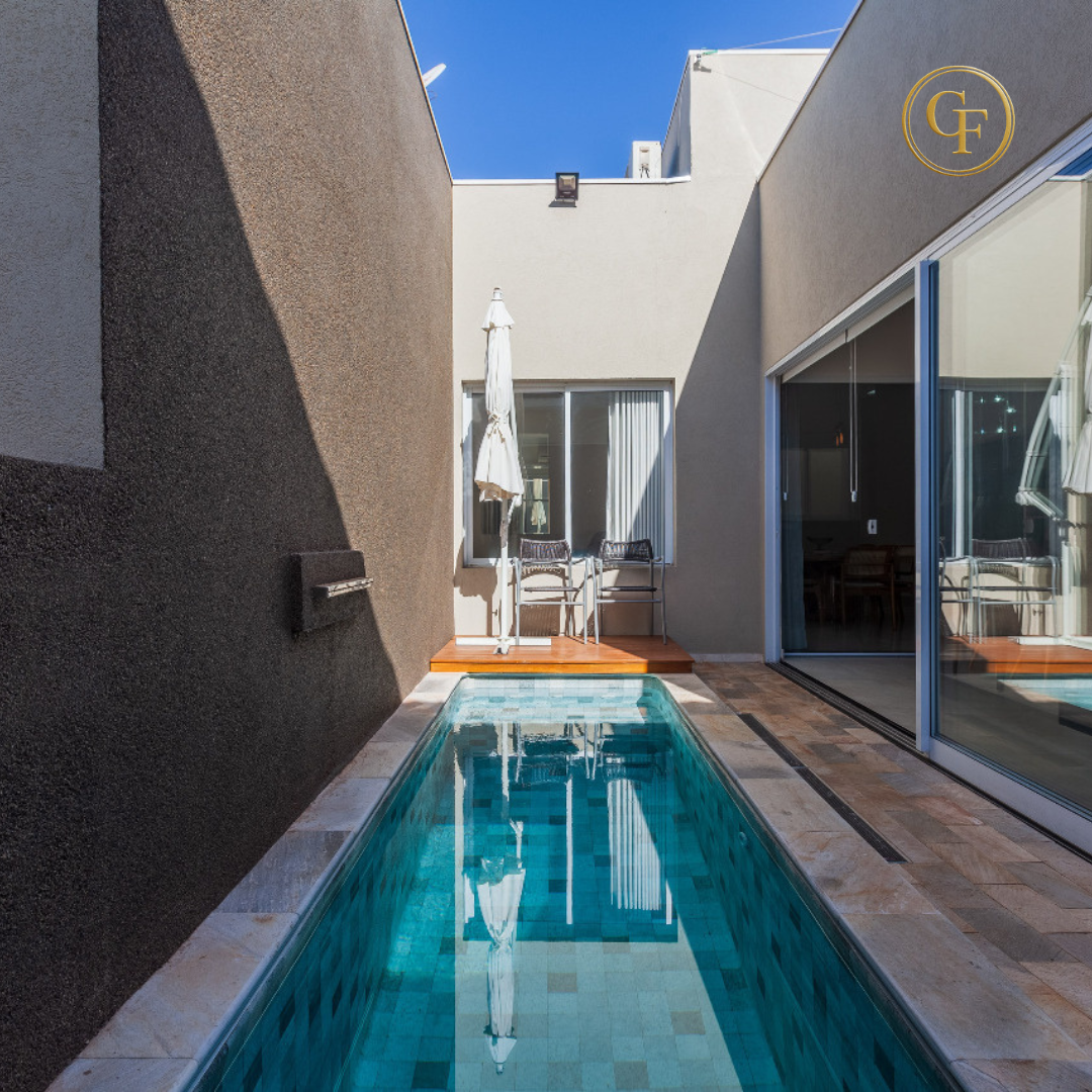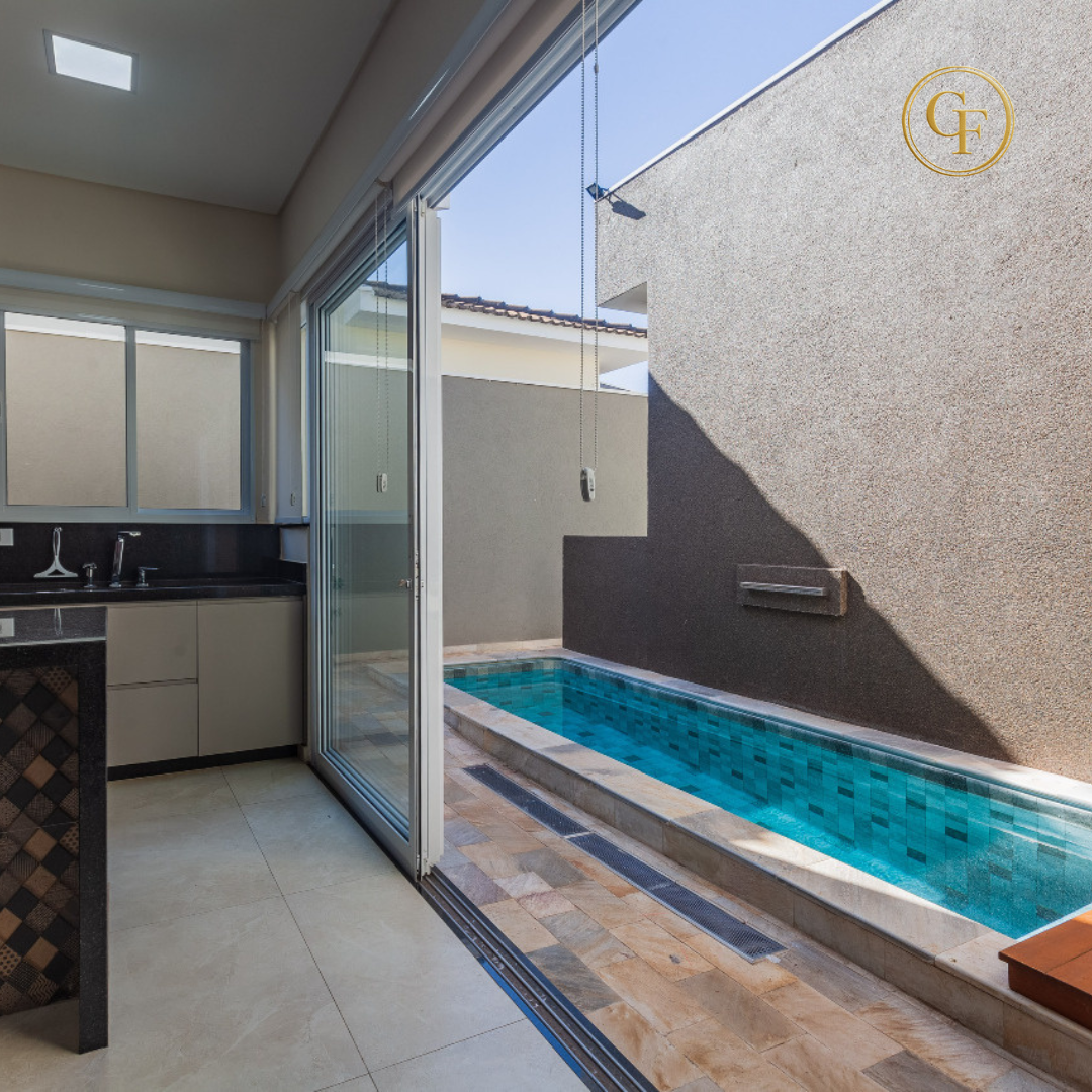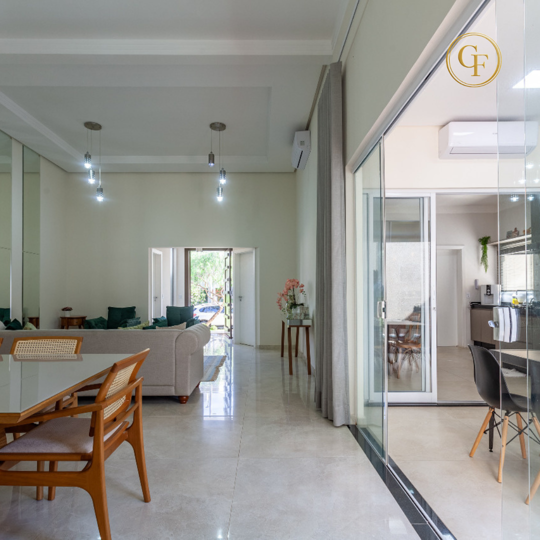 Esta residência térrea contemporânea combina design sofisticado, ambientes amplos e integração perfeita entre os espaços sociais e de lazer.