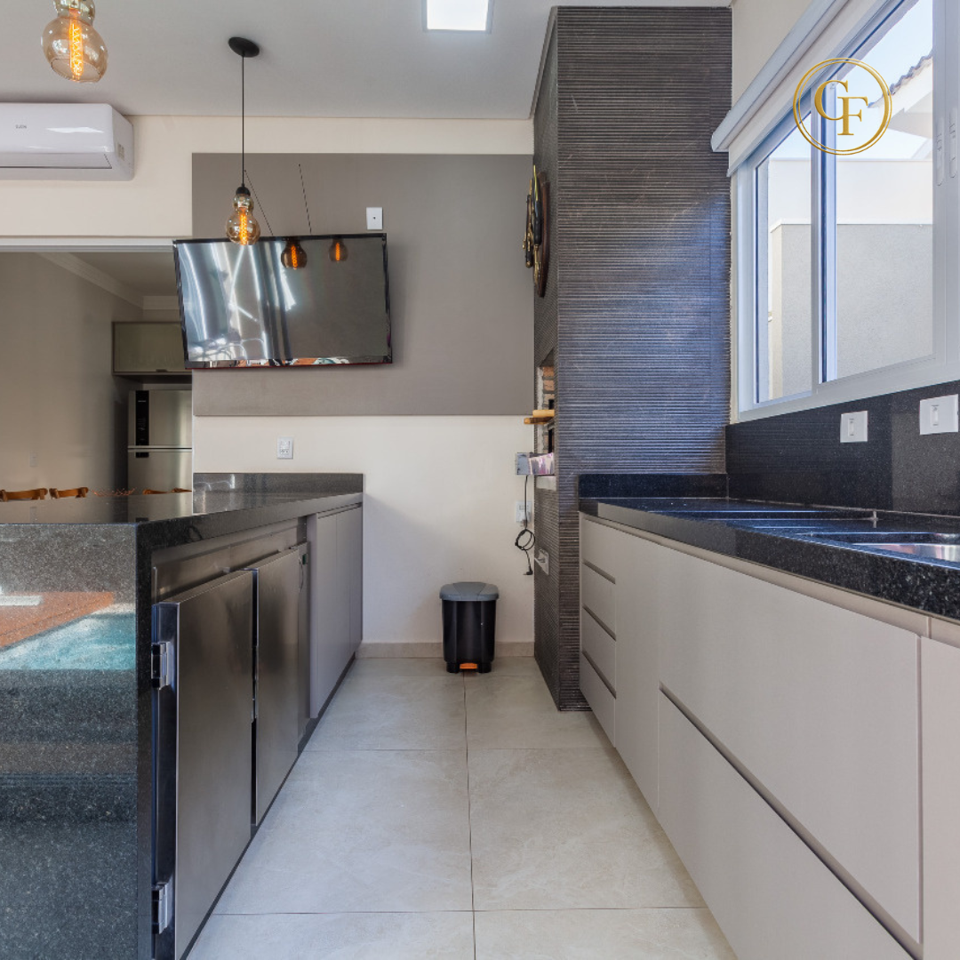 ✅ Cozinha planejada com bancada em granito e churrasqueira embutida 🍖;