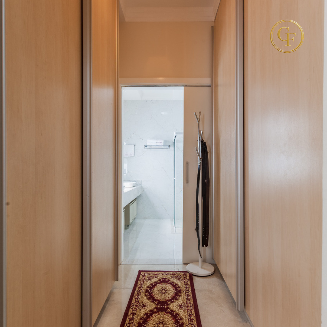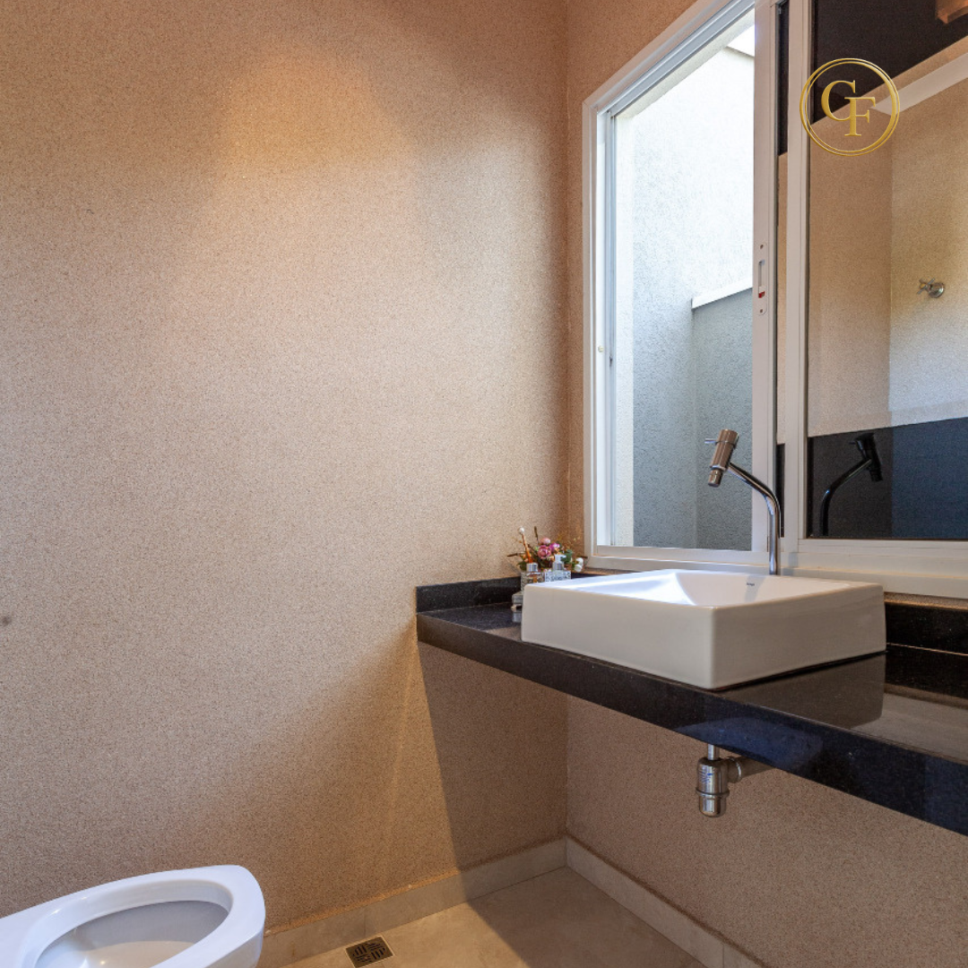 ✅ Banheiro social com revestimentos em mármore e acabamentos premium;
