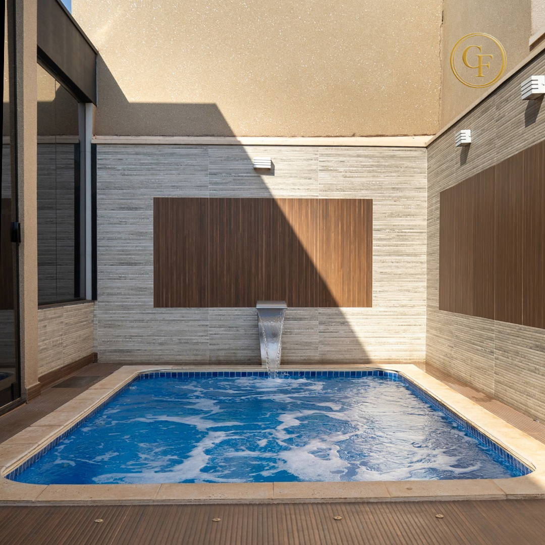 🏠Ótima casa com 3 suítes modernas (todas com Jardim de inverno, sendo a suíte master com closet), cozinha planejada com armários, cooktop e forno, sala com pé direito duplo, integrada a sala de jantar, piscina aquecida com cascata, hidromassagem, casa inteira climatizada, garagem para 4 carros, sistema de energia solar e boiler de 1000 L.